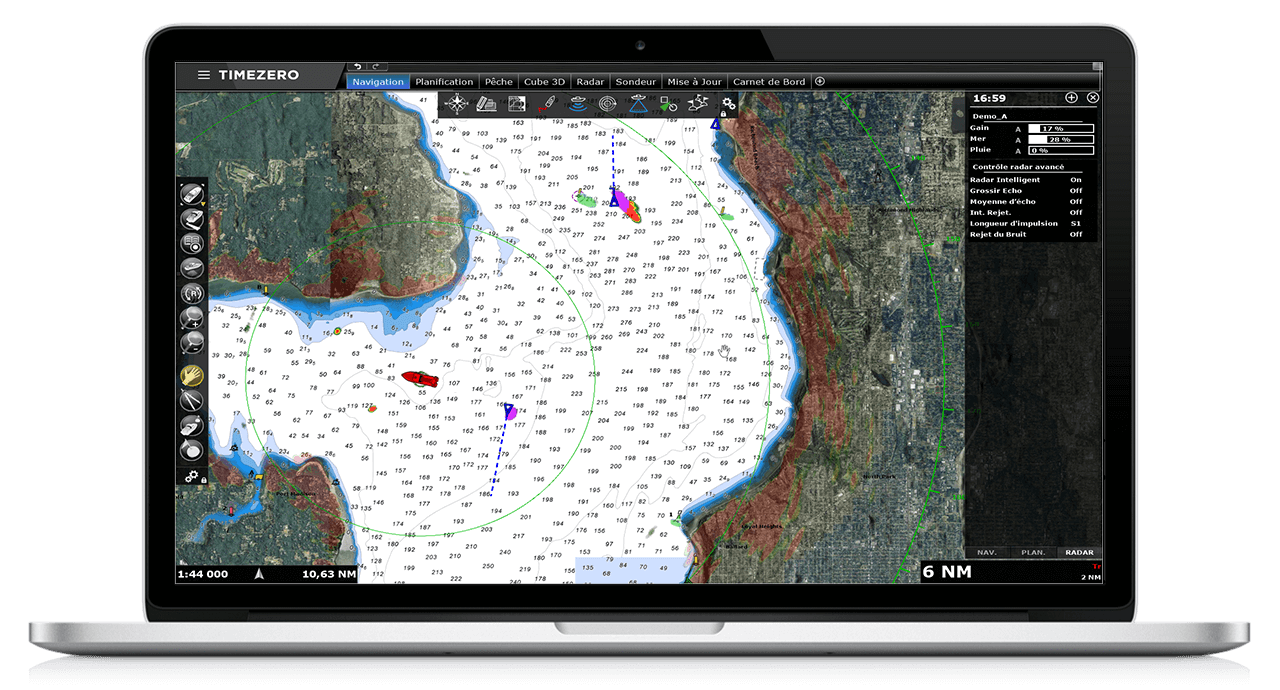 Thanks to our partnership with FURUNO, the world’s leading marine electronics manufacturer, TIMEZERO software offers exclusive, native compatibility (simple Ethernet connection) with all the FURUNO DRS antennas as well as the commercial series of FURUNO FAR radars. The radar image can be overlaid directly on the chart in order to have a better understanding of the data. TIMEZERO offers the ability to take full control of the radar directly from a dedicated workspace (Gain, Seaclutter, Rainclutter, etc.).